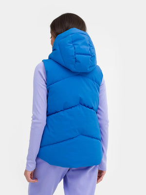 The down vest also has a comfortable hood with a high stand-up collar to protect you from the wind and pockets where you can store small items.