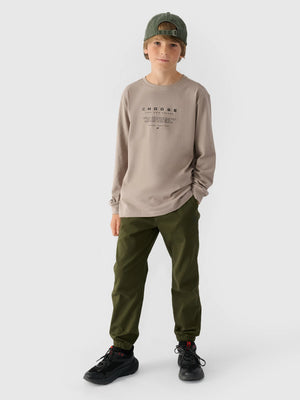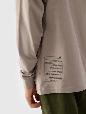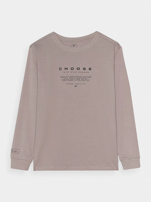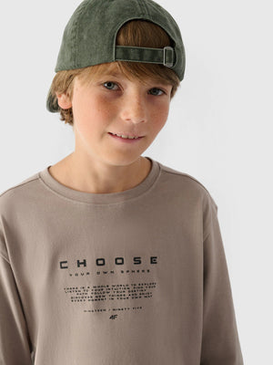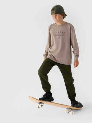 The long-sleeved top for boy is made of 100% cotton, making it soft, durable and pleasant to the touch. The crew neck is finished with a slight ribbing. Ribbed sleeves. The inscription "Choose Your Own Sphere" is visible on the front. The inscription "Entry On Your Own Risk" on the right sleeve.
