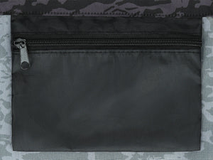 The bag on the back has a drawstring shoulder strap that acts as a drawstring. An additional, zipped pocket for small items. The whole thing is completed by reflective elements.