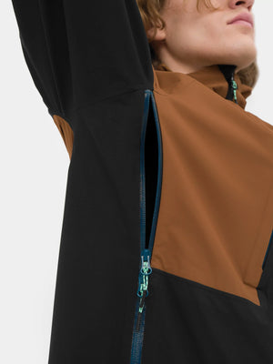 The jacket can be worn as a rainproof layer (hardshell) over clothing that performs an insulating function, such as down, fleece or softshell.