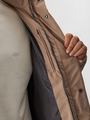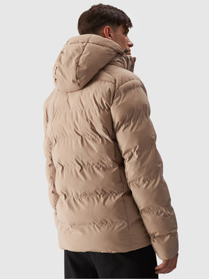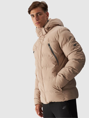 4F men's down jacket with synthetic down, which is more durable and easier to care for than natural down. Even when exposed to moisture, it retains its insulating properties for longer and dries much faster. It also does not require a complicated washing and drying process.
