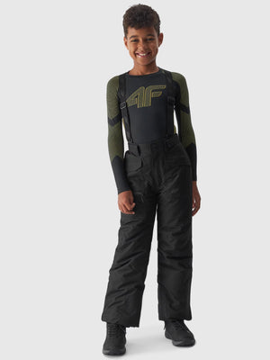 Boy's ski bib trousers 10000 membrane. Made of smooth, water-repellent fabric with polyester insulation.